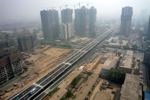 | 和平路是石家莊市北翼東西向的一條城市主干道,是石家莊市總體規(guī)劃中的“四橫”之一。和平路跨線橋(紅軍街——棉一立交橋)工程始于紅軍大街,跨越中華大街、九中街、北新街、車輛廠前街、京廣線、勝利大街、平安大街、長(zhǎng)征街后與棉一立交橋連接,高架橋全長(zhǎng)3616米。 由我公司承建的一標(biāo)段西起紅軍大街,東止于北新街東220米,總長(zhǎng)1621.267m,由高架橋梁、道路、排水管道、道路照明等工程項(xiàng)目組成,是全線三個(gè)標(biāo)段中工程量最大的標(biāo)段。2009年4月30日主橋主路正式通車,比預(yù)定工期提前了10個(gè)月。 “和平路跨線橋工程的建成通車,標(biāo)志著省會(huì)城市基礎(chǔ)設(shè)施建設(shè)翻開(kāi)嶄新的一頁(yè),對(duì)完善市區(qū)路網(wǎng)結(jié)構(gòu)和改善市民出行環(huán)境、進(jìn)一步改善城市面貌意義重大!---燕趙晚報(bào) 2009年5月1日 頭版